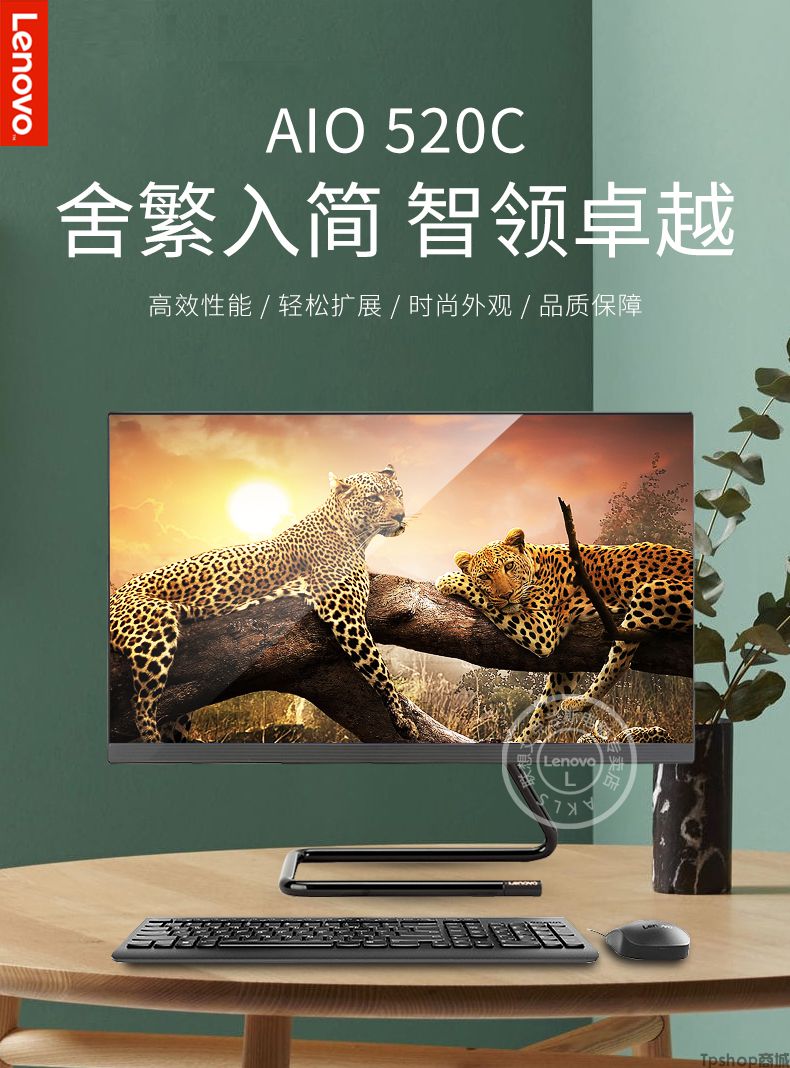 新款Lenovo/联想一体机电脑AIO520C一体台式电脑商用办公家用游戏学习窄边框酷睿八代i3轻薄电脑整机23.8英寸