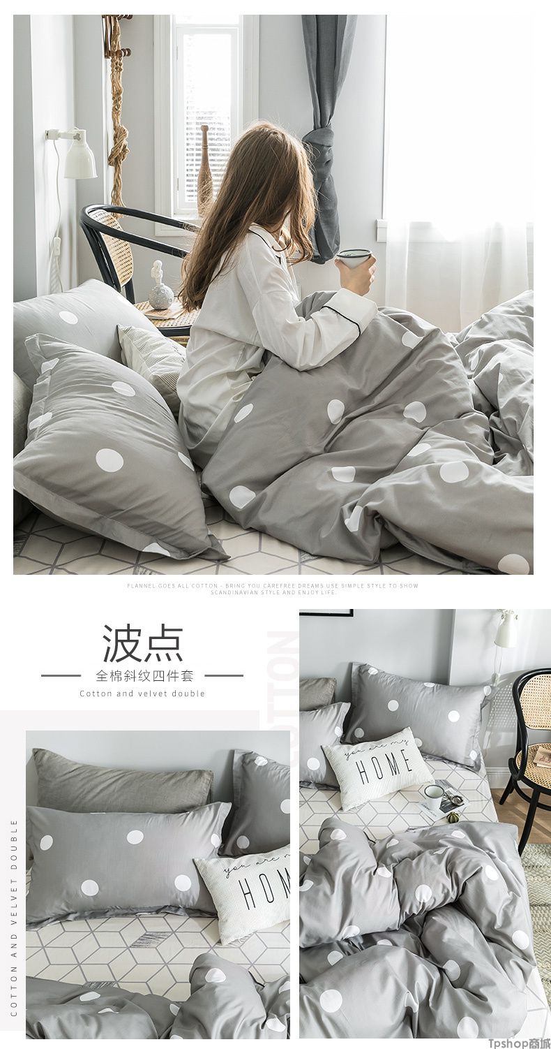 商品名称:ins风简约网红全棉四件套纯棉床单被套女1.5m1.8米床上用品三件套